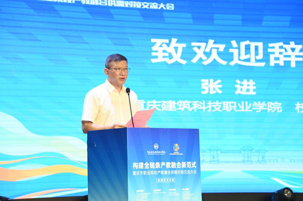 活动伊始,重庆建筑科技职业学院校长张进致欢迎辞,他指出,近年来,学校牢牢抓住产教融合这一职业教育改革发展的“牛鼻子”,探索构建以产教融合为核心的现代职业教育体系。学校通过“引企入校”“引商入校”“平台共建”等创新模式,推动产教融合、校企合作从“虚拟协同”向“实体运营”突破,实现产教融合项目的“自我造血”功能。