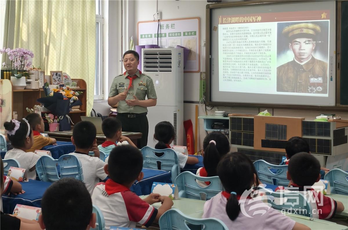 关爱未成年人成长,推进全环境立德树人,是道德模范刘统国国防教育宣讲的重要组成部分。在青岛重庆路第二小学、青岛李沧路小学,刘统国用孩子们听得懂、感兴趣的语言,分别为四年级、三年级学生搭建起通往国防知识的桥梁。他从“什么是国防”的基础问题切入,结合“守卫家园就像保护自己的书包和文具”的生动类比,让抽象的“国防”概念变得具体可感。随后,又沿着我国国防事业发展脉络,从革命时期的艰难抗争讲到新时代的科技强军,深受学生欢迎。