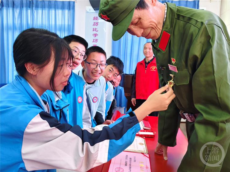 退役军人志愿者走进校园开展国防教育。