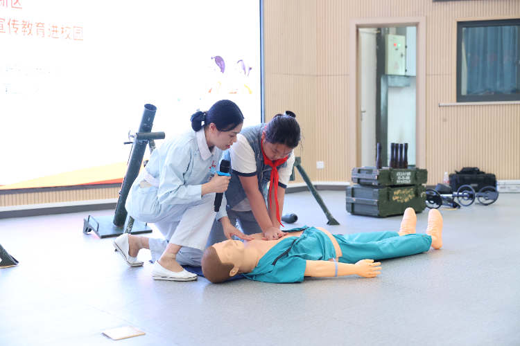 “大家知道防空警报分为哪几种吗?”活动现场,重庆市国防动员志愿服务总队的专业讲师以“小故事+大道理”的方式,将晦涩的国防知识转化为浅显易懂的语言,从人民防空的百年发展历程,到“核、化、生”武器防护的“三防”基本常识,再到战场救护中心肺复苏的按压技巧、气道异物梗阻的海姆立克急救法,层层递进、细致讲解。每一个知识点,都紧紧抓住了同学们的注意力。