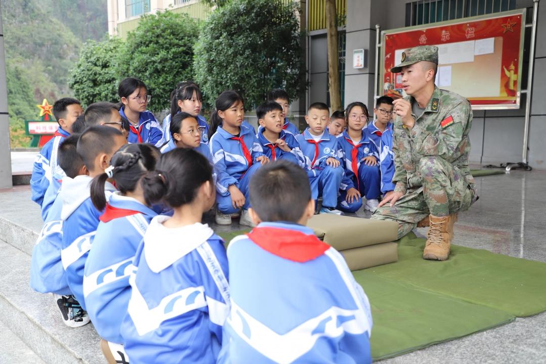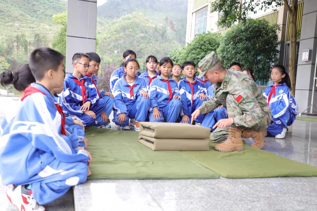 “哇!这就是保护我们的装备吗?摸起来好有力量感!”“原来‘豆腐块’被子要这样叠,解放军叔叔也太厉害啦!”近日,贵州省六盘水市水城区人武部营区里,共建学校区一小30余名学生的惊叹声、提问声此起彼伏,一场“零距离”国防教育体验活动正在进行,将课本上抽象的“国防”二字,变成了可看、可触、可感的鲜活课堂。