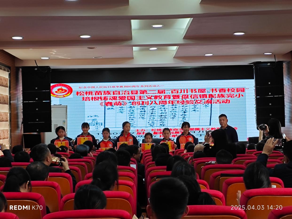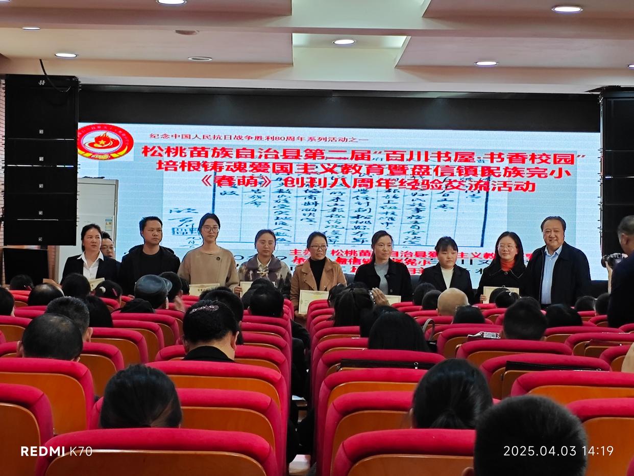 活动中,盘信镇民族完全小学主办的校园文学刊物《春萌》脱颖而出。自2017年创刊以来,这本校刊始终坚持爱国主义教育导向,成为传播学生文学作品与表达家国情怀的重要平台。刊发内容涵盖诗歌、散文、随笔等丰富形式,多篇文章在《贵州日报》《铜仁日报》等主流媒体上刊登,形成“学生写、学校编、媒体发”的传播闭环,扩大了育人实效。为表彰先进,松桃苗族自治县爱国主义教育研究会对26名爱岗敬业、成绩突出的教师及66名优秀学生颁发荣誉证书和奖状。