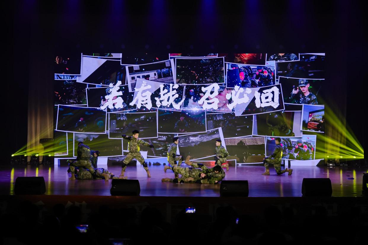 颁奖仪式后,以“传承红色基因,激发参军热情”为主线的文艺汇演,通过情景剧、朗诵、舞蹈、小品等艺术形式,生动展现了当代青年的家国情怀与使命担当,现场响起阵阵热烈掌声。最后,全体演员与观众齐声高唱《强军战歌》,嘹亮的歌声响彻礼堂,将整场活动推向高潮。