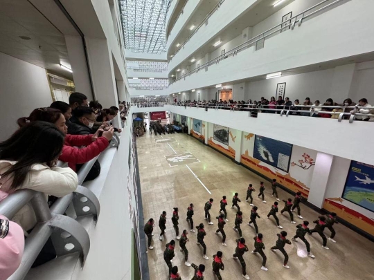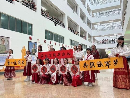 拳术、旗语操、书画、歌舞、朗诵、情景剧等具有国防特色的节目轮番呈现。在拳术表演环节,孩子们出拳有力,肘击挟风,一拳一脚尽显青春本色,一招一式尽展报国热情。整场演出精彩纷呈,掌声迭起,好评如潮,充分展现了新时代青少年斗志昂扬和意气风发的精神风貌。