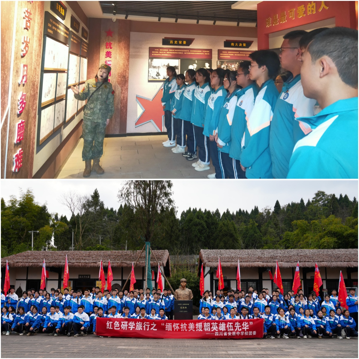 天地英雄气,千秋尚凛然。遂宁市安居区人武部联合安居中学,带领学生前往抗美援朝“一级爆破英雄”伍先华烈士故居开展国防教育,引导他们树立家国情怀,强化国防观念。雅安市雨城区人武部联合雨城区第八小学前往雅安烈士陵园,现场讲述英雄故事,开展“沉浸式”爱国主义教育,进一步弘扬爱国主义精神,提高师生国防意识。