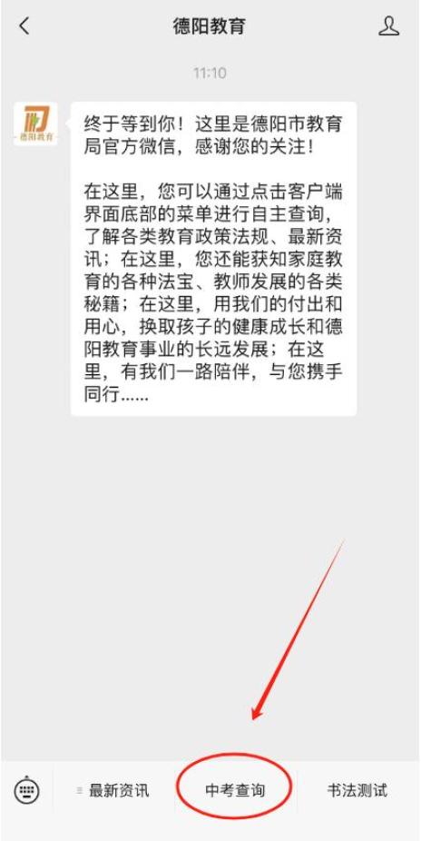 一、扫码关注德阳教育微信公众号查询;