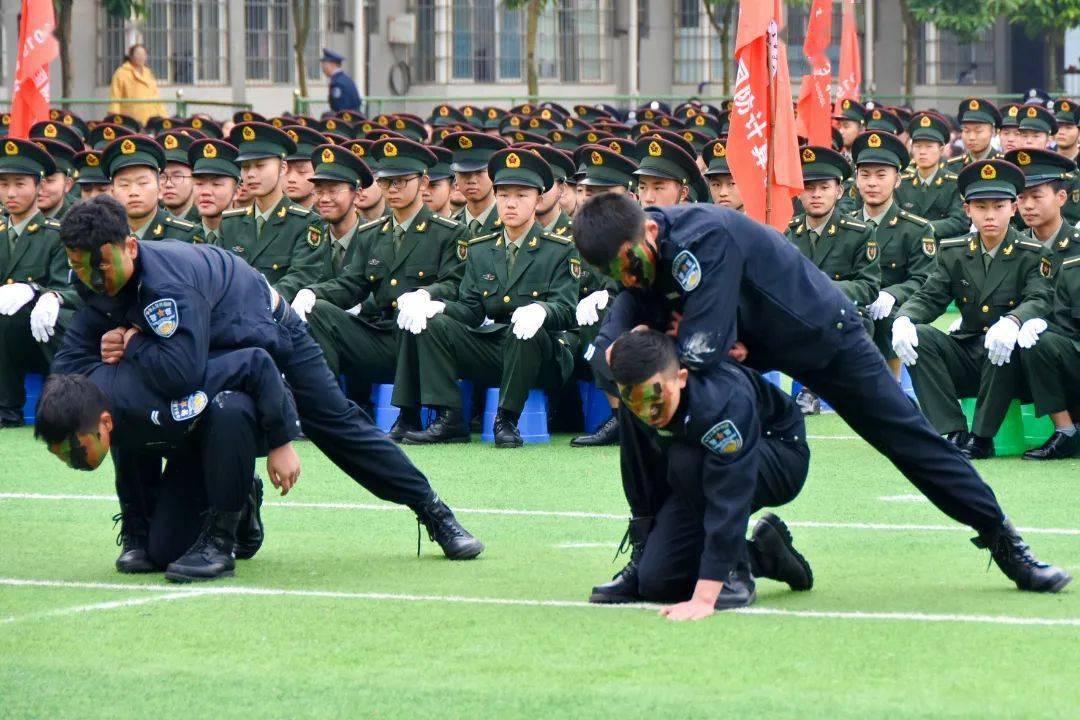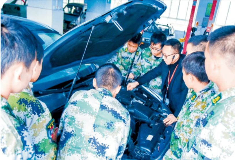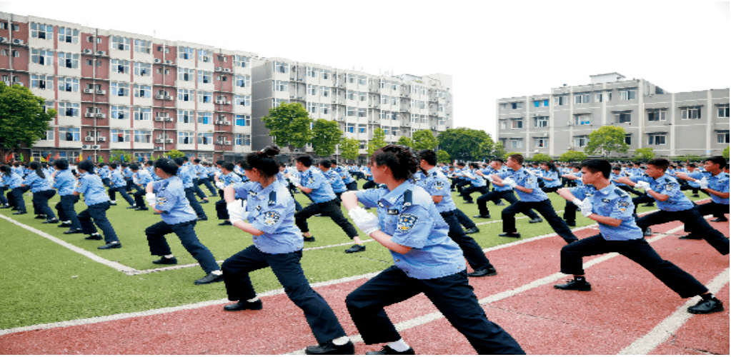 ——严正纲规彰铁纪。命严方可肃兵威,令重始足于整纲纪。为深入开展国防教育课程,融入军事化管理元素,达到军事化管理效果,学校成立了国防教育办公室,由国防教育办公室牵头负责国防班级军事化管理、教学、训练等工作。学校按人才培养目标对专业实施性教学计划进行了修订,组建了国防教育预备人才培养班(简称“国防班”),共3000余人,分设电子技术应用、计算机应用、汽车运用与维修3个专业。同时,将军事课程融入课程体系,开设军事理论课和军事技能课程,每周4节,确保了对国防班级学生进行军事理论知识的传授和军事技能训练的要求,开展进行单个军人队列动作、刺杀操、应急棍、战术、警棍盾牌操、匕首操、擒敌拳、军体拳、手语操(国家)等综合项目的学习。