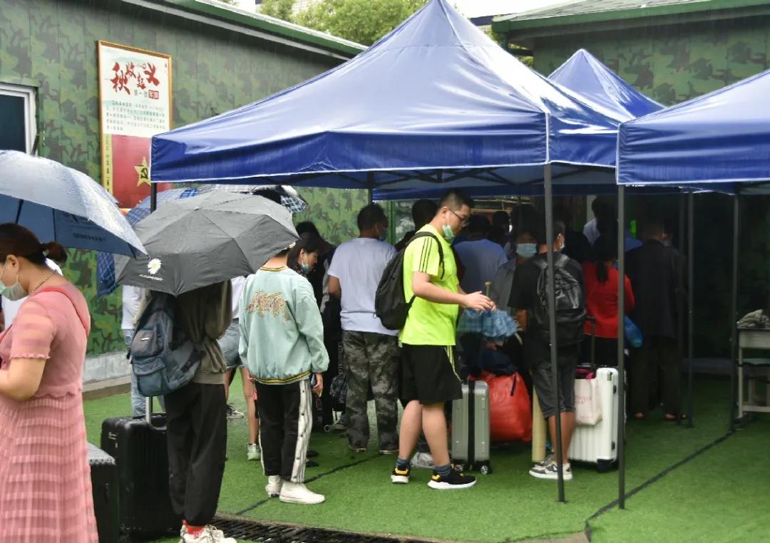 新生报到在进入校门时候,将通过一系列严格的疫情防控检查:出示绿码、行程码,出示核酸检测报告,测温。入校后找到分班名册,再到对应的班主任处报到登记。随后志愿者协助办理其他手续,领取物品到寝室入住。学校的各项工作都在有条不紊地进行,确保每一位学生的报到能够高效开展。