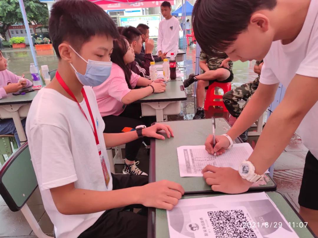 班主任老师们处认真检查新生报到各项手续,耐心解释家长及学生的问题,认真嘱咐同学们入校后的各类注意事项。