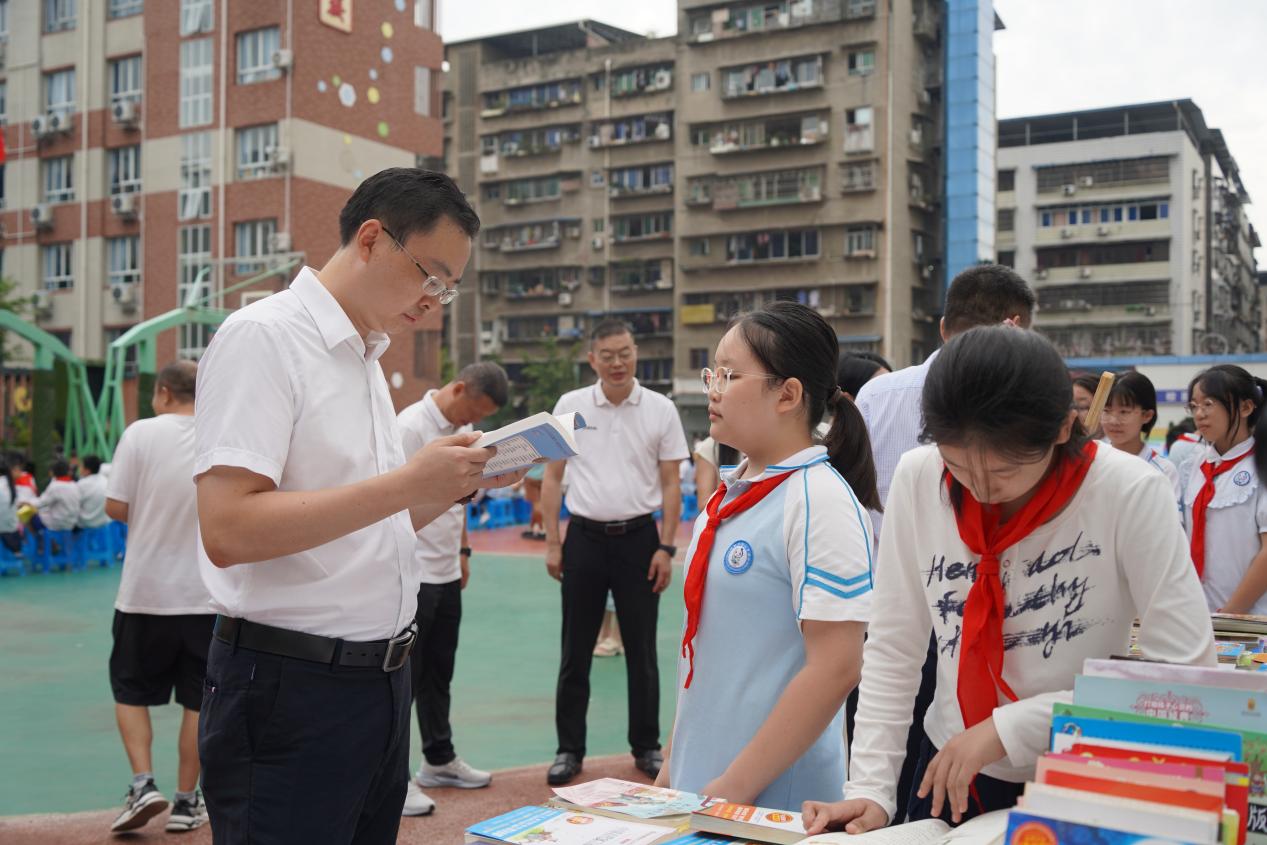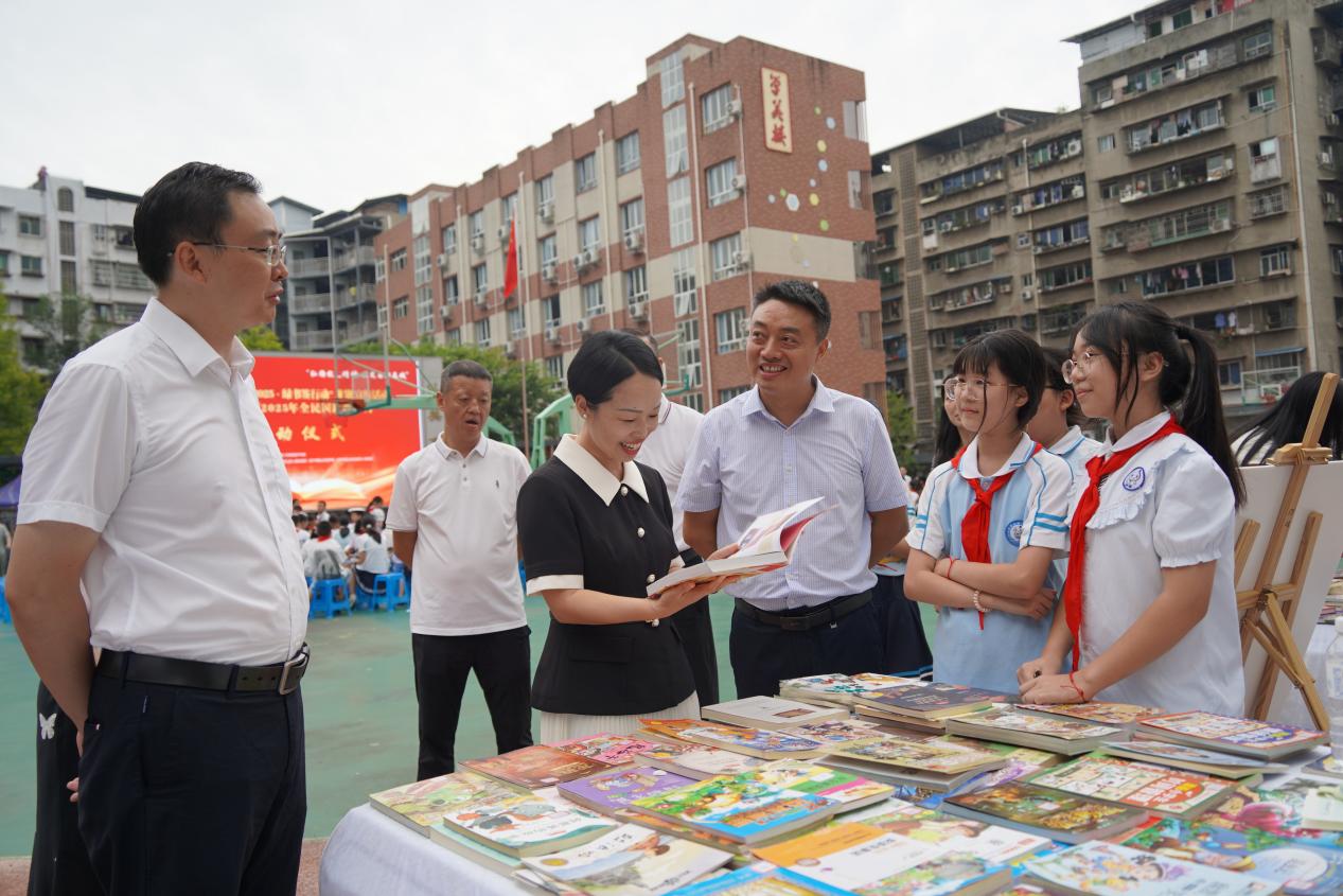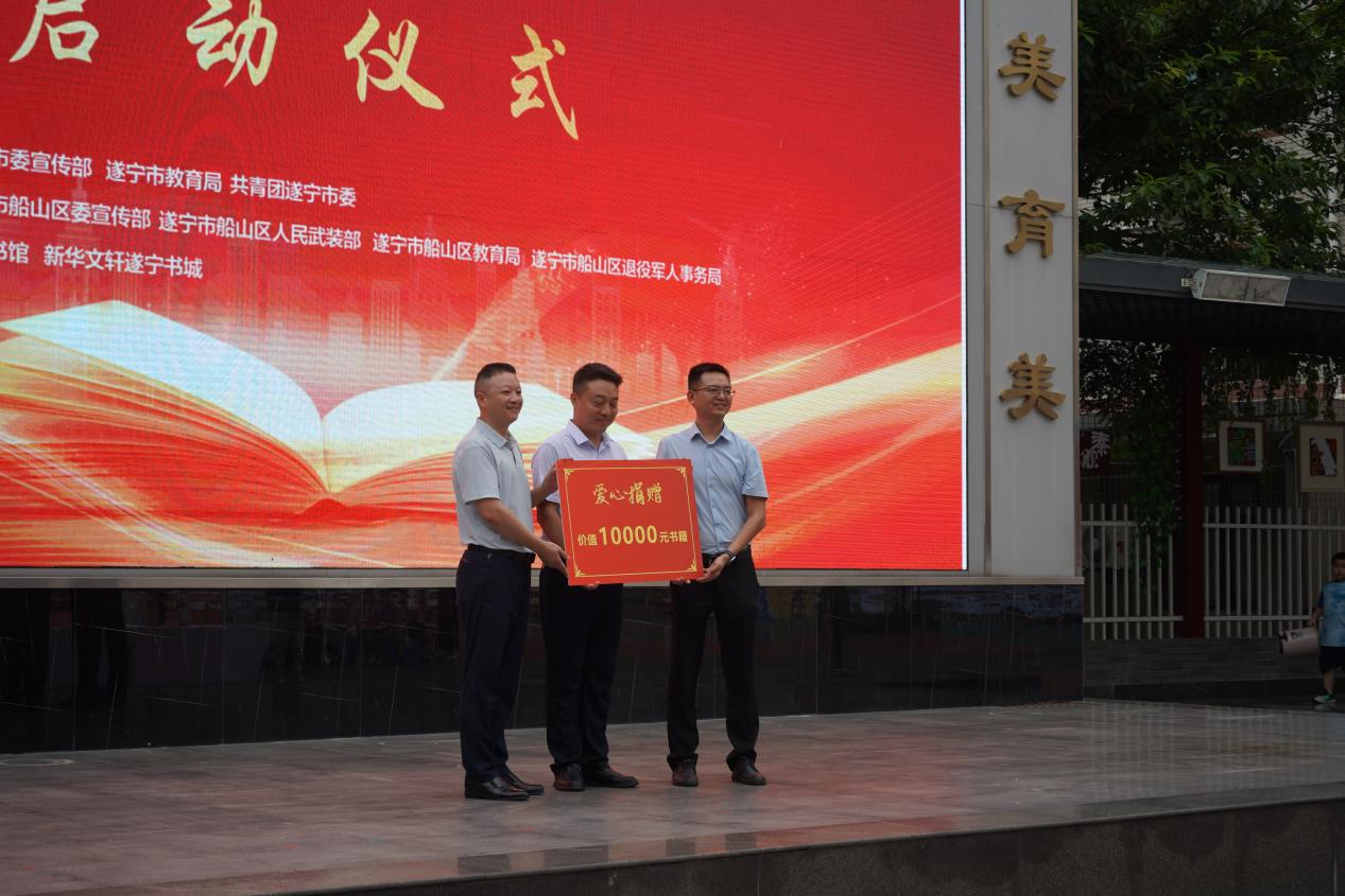 仪式上,学生代表郑重宣读了“绿书签行动”倡议书,呼吁同学们自觉抵制有害出版物,养成良好阅读习惯。船山区委宣传部联合新华文轩遂宁书城向新盐市街小学捐赠了精心挑选的图书,传递知识的力量。中共遂宁市委宣传部副部长、市新闻出版局(市版权局)局长刘光健出席活动并宣布遂宁市“护苗2025·绿书签行动”主题宣传活动暨船山区2025年全民国防教育月正式启动。